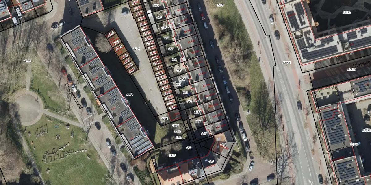 Gebruik de zoekbalk of klik op een perceel om informatie over het perceel te bekijken.