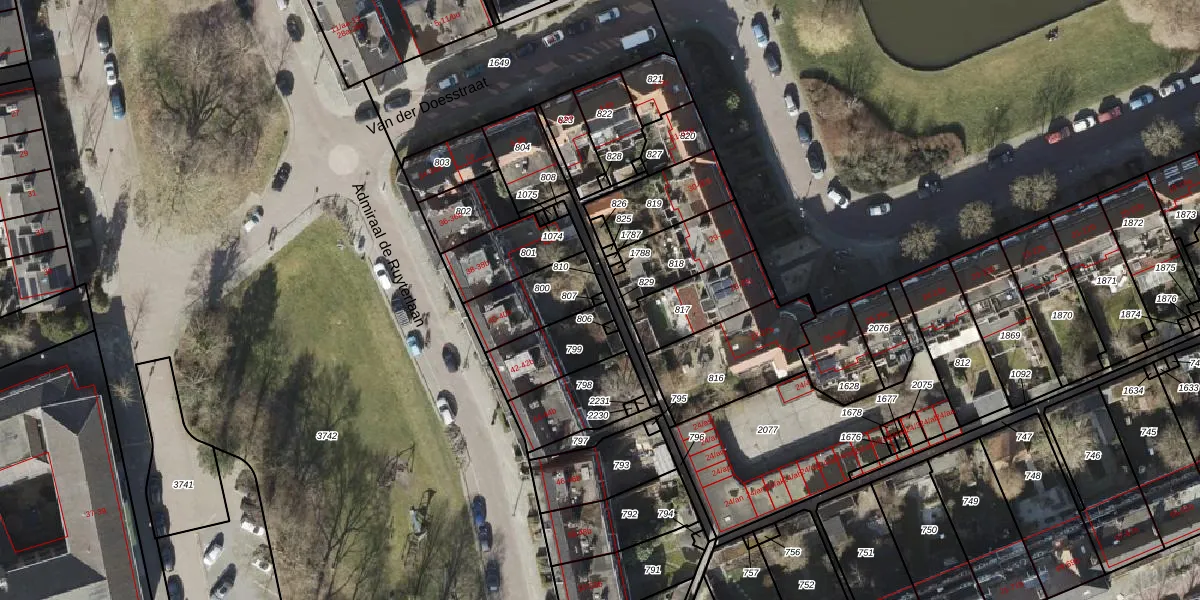 Gebruik de zoekbalk of klik op een perceel om informatie over het perceel te bekijken.