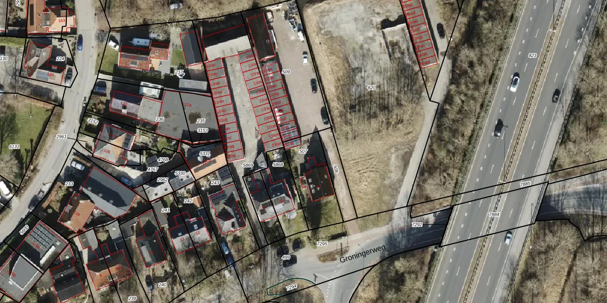 Gebruik de zoekbalk of klik op een perceel om informatie over het perceel te bekijken.