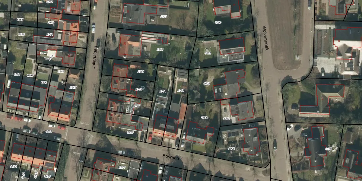 Gebruik de zoekbalk of klik op een perceel om informatie over het perceel te bekijken.