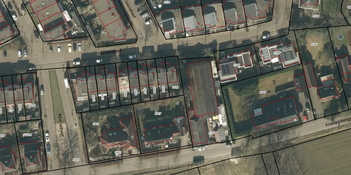Gebruik de zoekbalk of klik op een perceel om informatie over het perceel te bekijken.