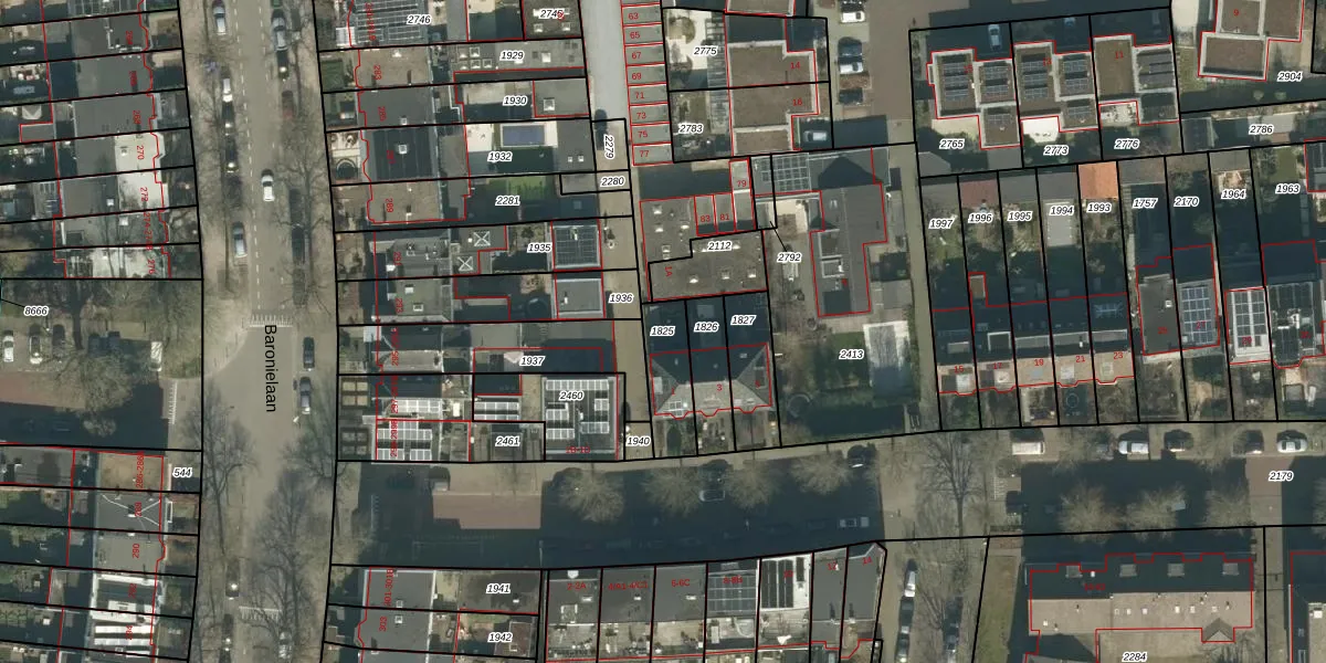 Gebruik de zoekbalk of klik op een perceel om informatie over het perceel te bekijken.
