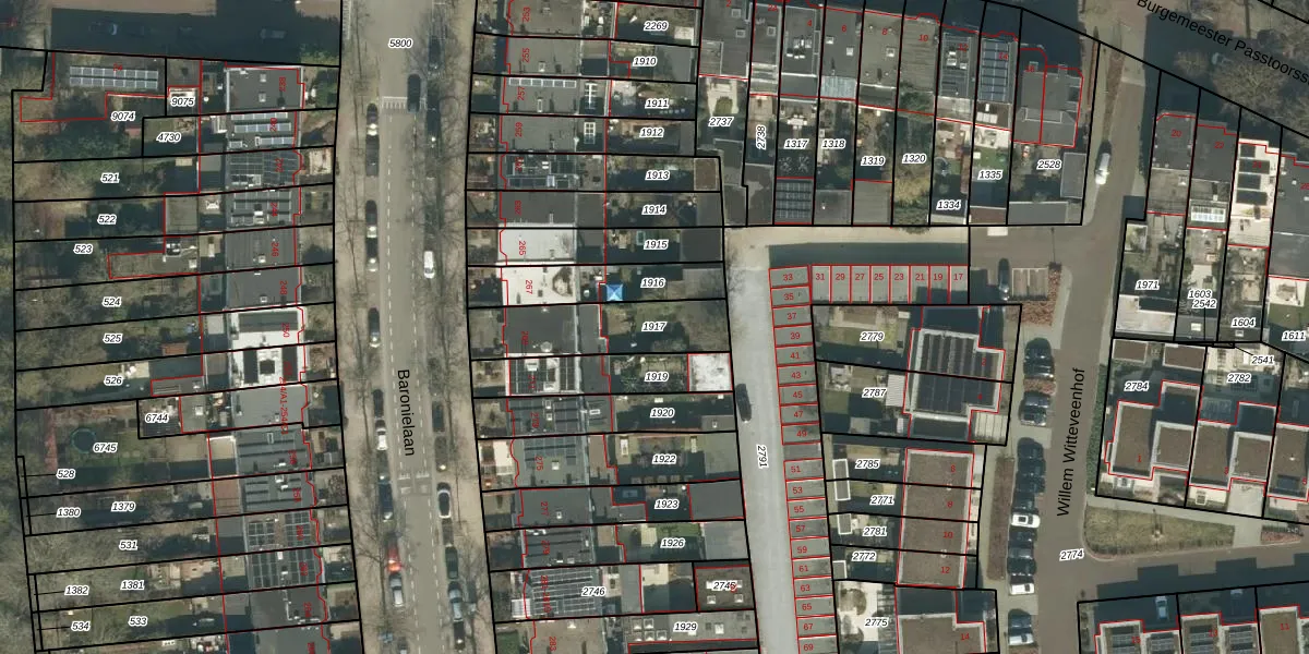 Gebruik de zoekbalk of klik op een perceel om informatie over het perceel te bekijken.