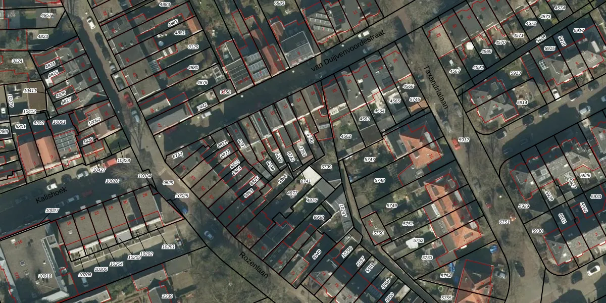 Gebruik de zoekbalk of klik op een perceel om informatie over het perceel te bekijken.
