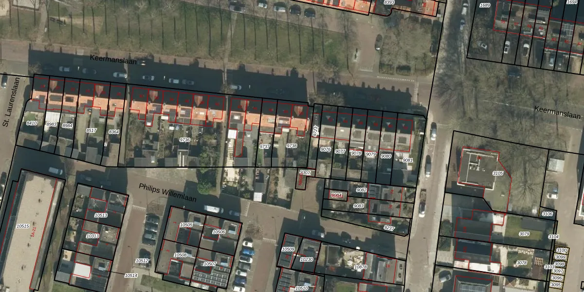 Gebruik de zoekbalk of klik op een perceel om informatie over het perceel te bekijken.
