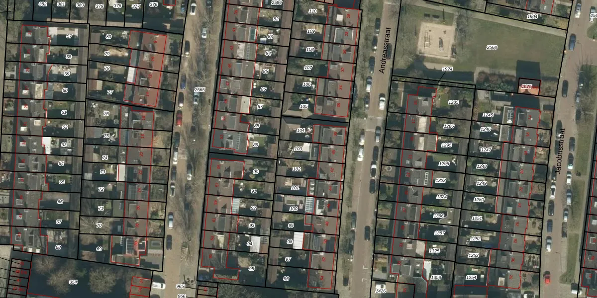 Gebruik de zoekbalk of klik op een perceel om informatie over het perceel te bekijken.