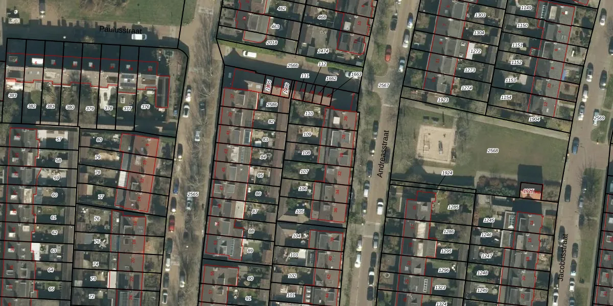 Gebruik de zoekbalk of klik op een perceel om informatie over het perceel te bekijken.