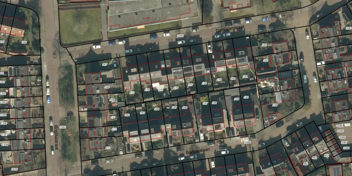 Gebruik de zoekbalk of klik op een perceel om informatie over het perceel te bekijken.