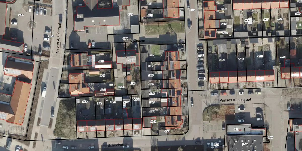 Gebruik de zoekbalk of klik op een perceel om informatie over het perceel te bekijken.