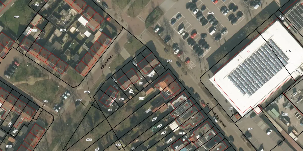 Gebruik de zoekbalk of klik op een perceel om informatie over het perceel te bekijken.