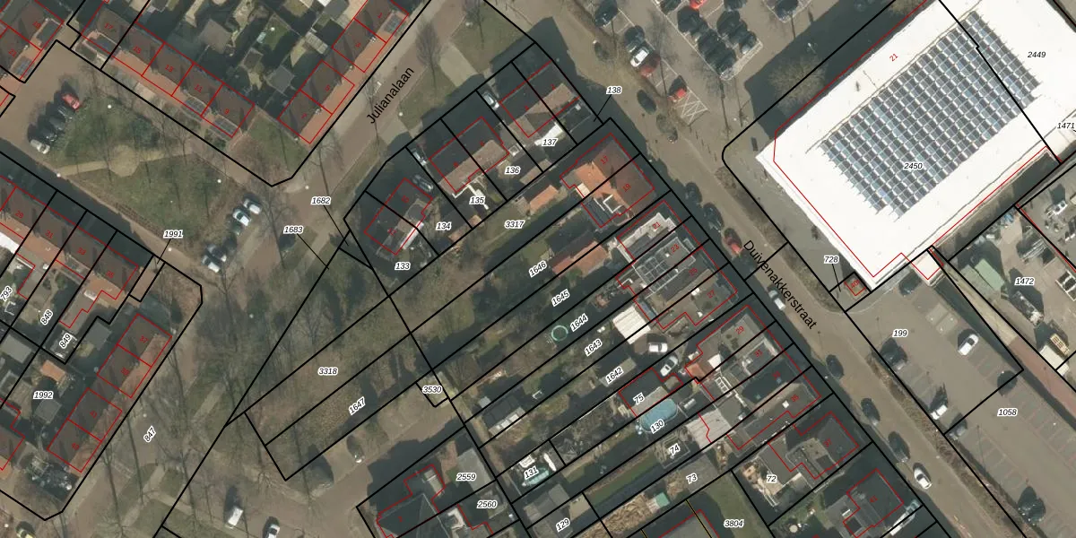 Gebruik de zoekbalk of klik op een perceel om informatie over het perceel te bekijken.