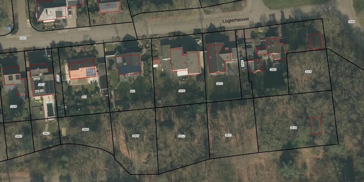 Gebruik de zoekbalk of klik op een perceel om informatie over het perceel te bekijken.