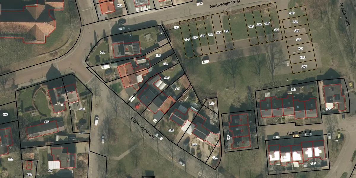 Gebruik de zoekbalk of klik op een perceel om informatie over het perceel te bekijken.