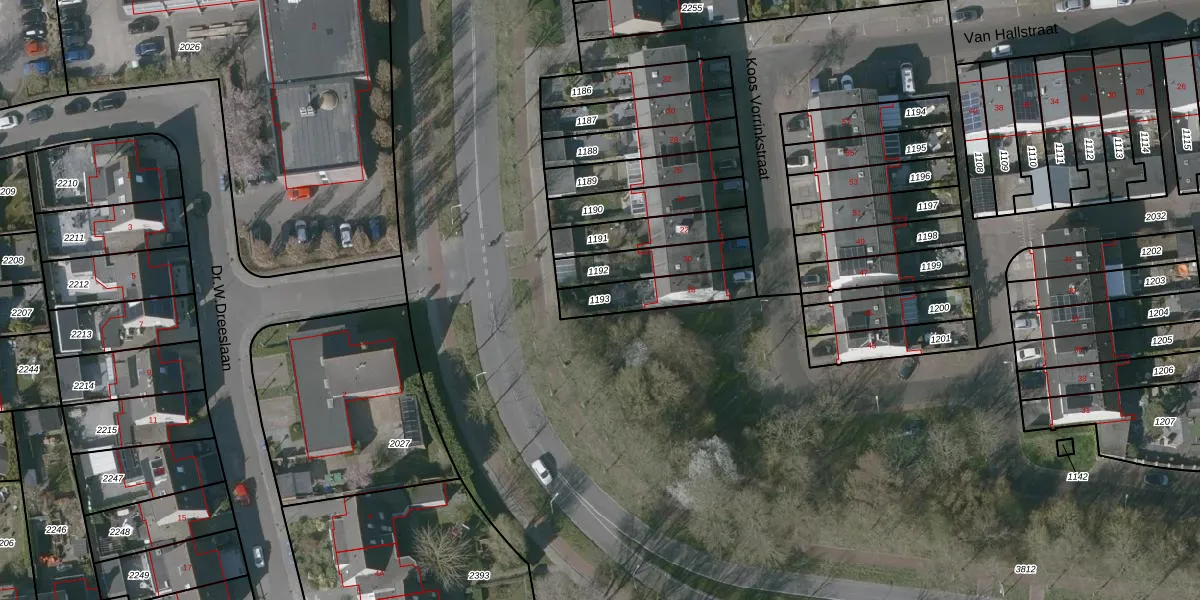 Gebruik de zoekbalk of klik op een perceel om informatie over het perceel te bekijken.