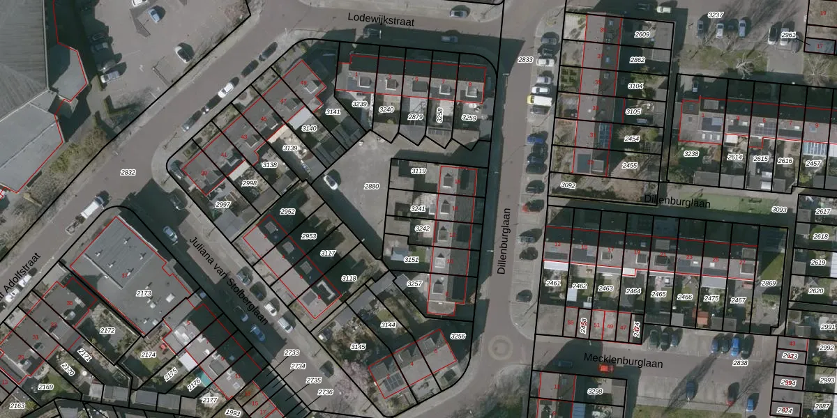 Gebruik de zoekbalk of klik op een perceel om informatie over het perceel te bekijken.