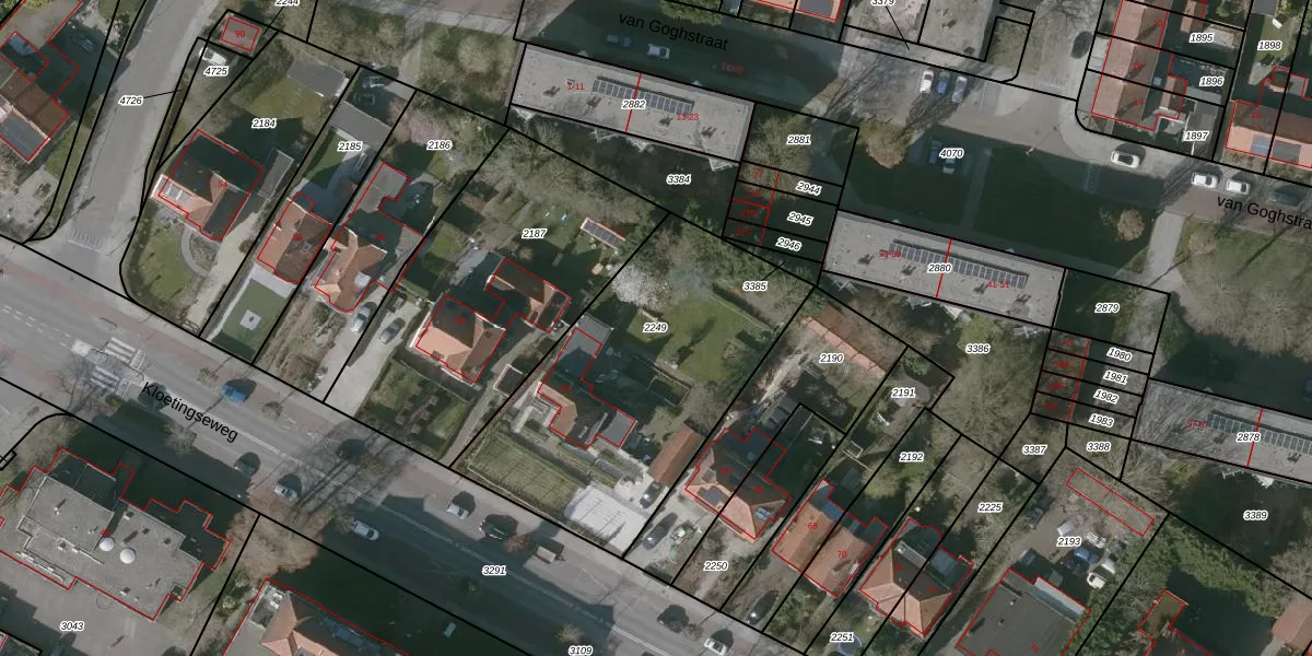 Gebruik de zoekbalk of klik op een perceel om informatie over het perceel te bekijken.
