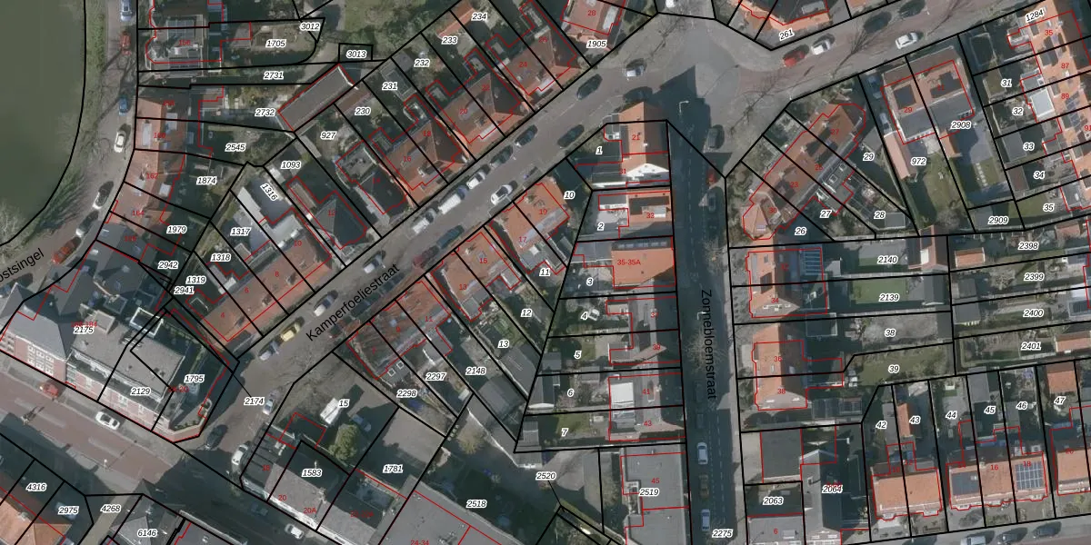 Gebruik de zoekbalk of klik op een perceel om informatie over het perceel te bekijken.