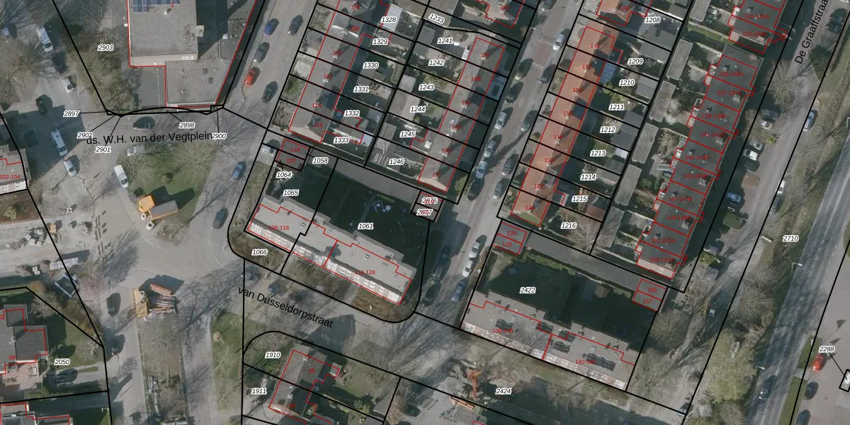 Gebruik de zoekbalk of klik op een perceel om informatie over het perceel te bekijken.