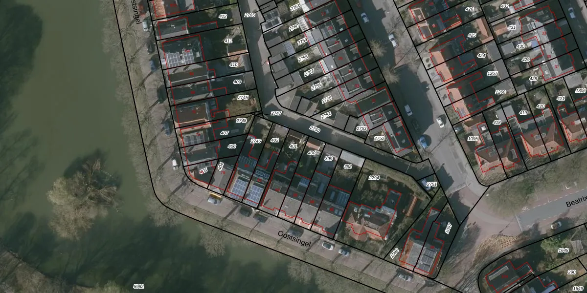 Gebruik de zoekbalk of klik op een perceel om informatie over het perceel te bekijken.