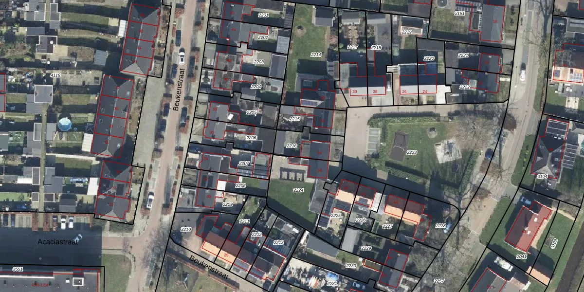 Gebruik de zoekbalk of klik op een perceel om informatie over het perceel te bekijken.
