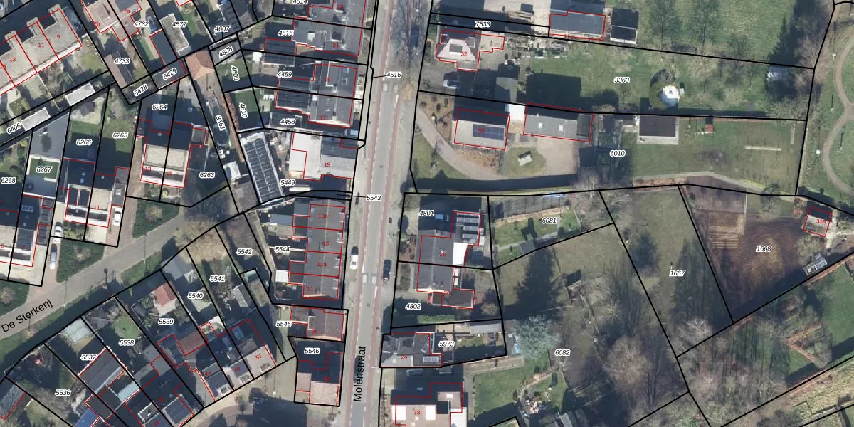 Gebruik de zoekbalk of klik op een perceel om informatie over het perceel te bekijken.