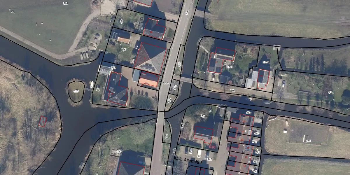Gebruik de zoekbalk of klik op een perceel om informatie over het perceel te bekijken.