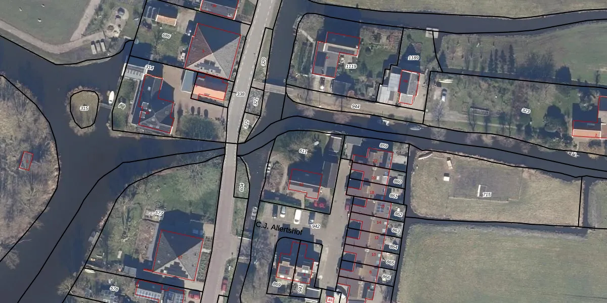 Gebruik de zoekbalk of klik op een perceel om informatie over het perceel te bekijken.