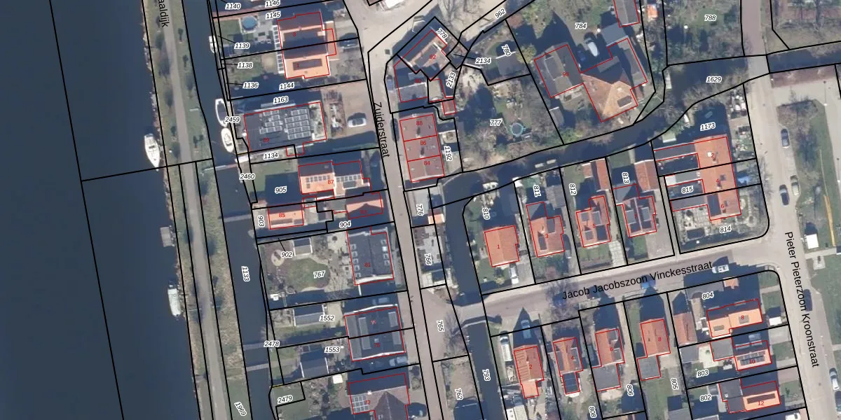 Gebruik de zoekbalk of klik op een perceel om informatie over het perceel te bekijken.