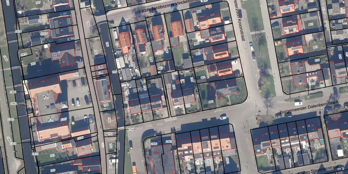 Gebruik de zoekbalk of klik op een perceel om informatie over het perceel te bekijken.