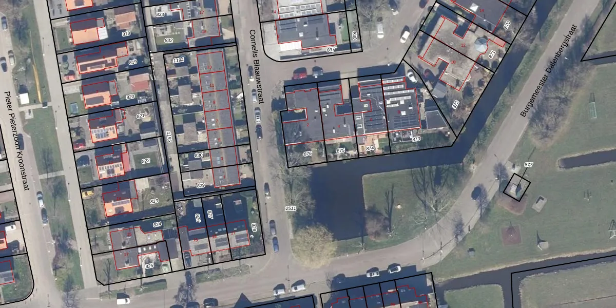Gebruik de zoekbalk of klik op een perceel om informatie over het perceel te bekijken.