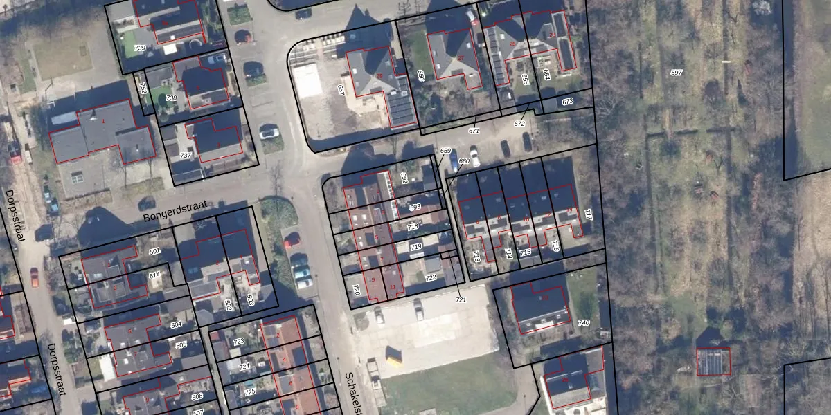 Gebruik de zoekbalk of klik op een perceel om informatie over het perceel te bekijken.