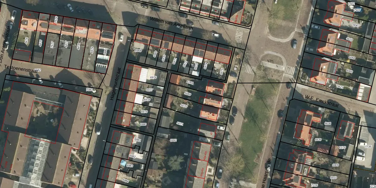 Gebruik de zoekbalk of klik op een perceel om informatie over het perceel te bekijken.