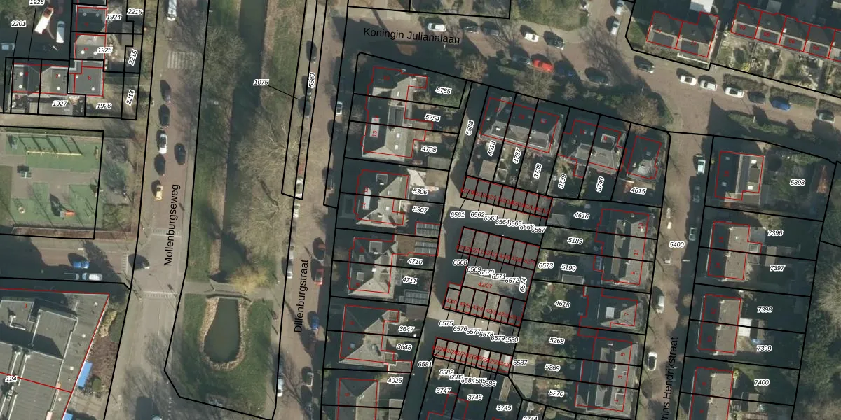 Gebruik de zoekbalk of klik op een perceel om informatie over het perceel te bekijken.