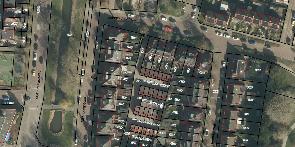 Gebruik de zoekbalk of klik op een perceel om informatie over het perceel te bekijken.