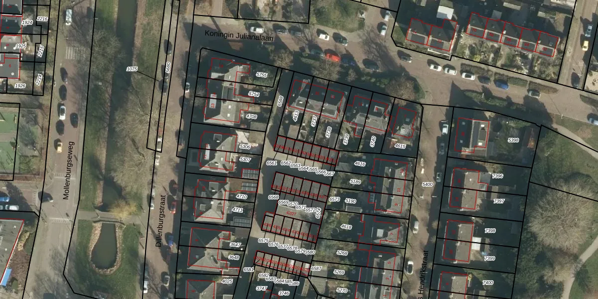 Gebruik de zoekbalk of klik op een perceel om informatie over het perceel te bekijken.