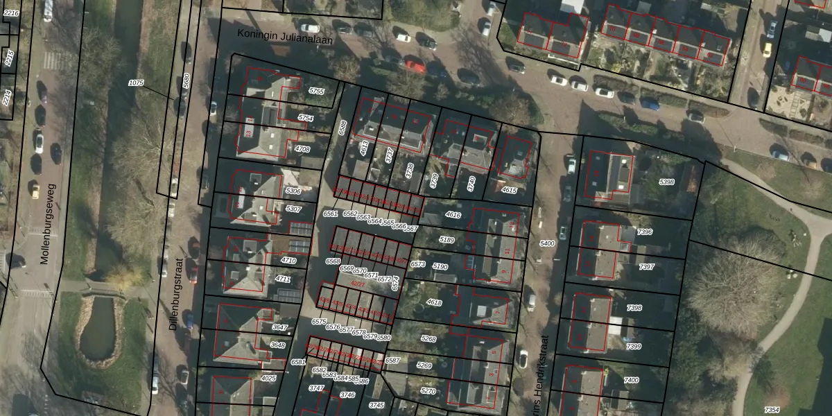 Gebruik de zoekbalk of klik op een perceel om informatie over het perceel te bekijken.