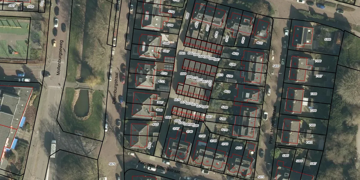Gebruik de zoekbalk of klik op een perceel om informatie over het perceel te bekijken.