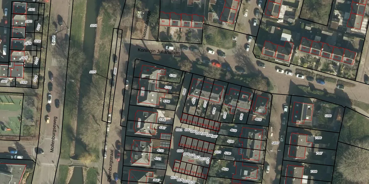 Gebruik de zoekbalk of klik op een perceel om informatie over het perceel te bekijken.