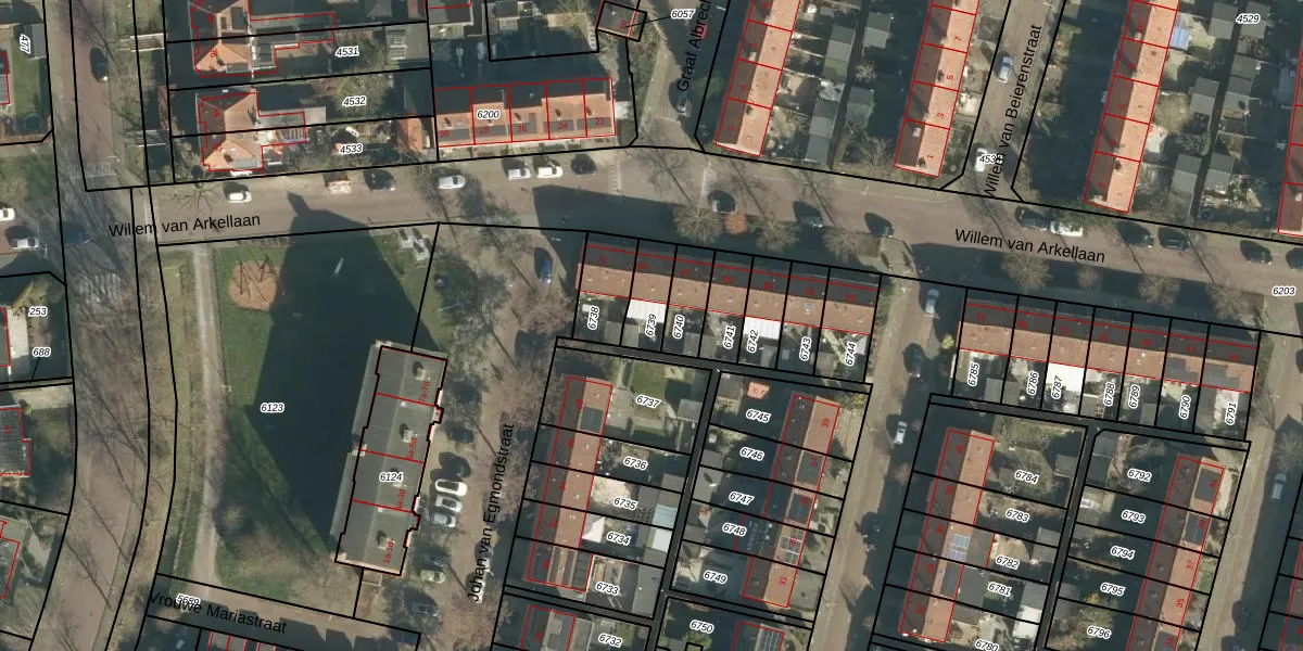 Gebruik de zoekbalk of klik op een perceel om informatie over het perceel te bekijken.