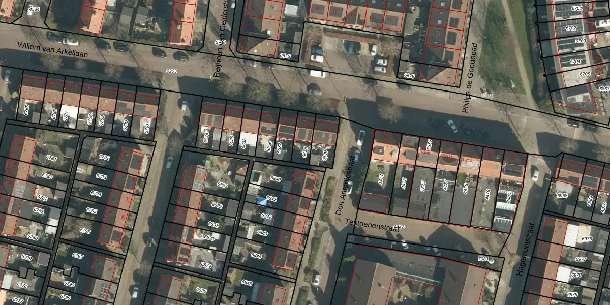 Gebruik de zoekbalk of klik op een perceel om informatie over het perceel te bekijken.