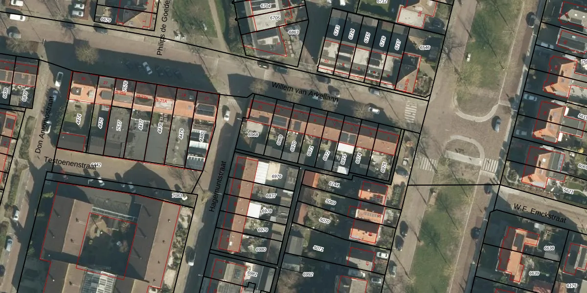 Gebruik de zoekbalk of klik op een perceel om informatie over het perceel te bekijken.
