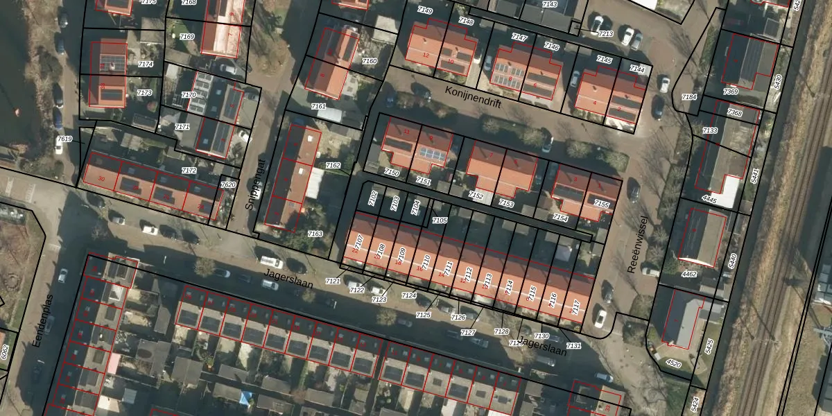 Gebruik de zoekbalk of klik op een perceel om informatie over het perceel te bekijken.