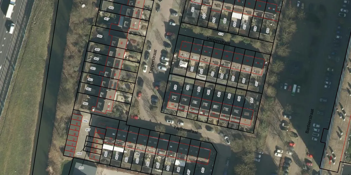 Gebruik de zoekbalk of klik op een perceel om informatie over het perceel te bekijken.