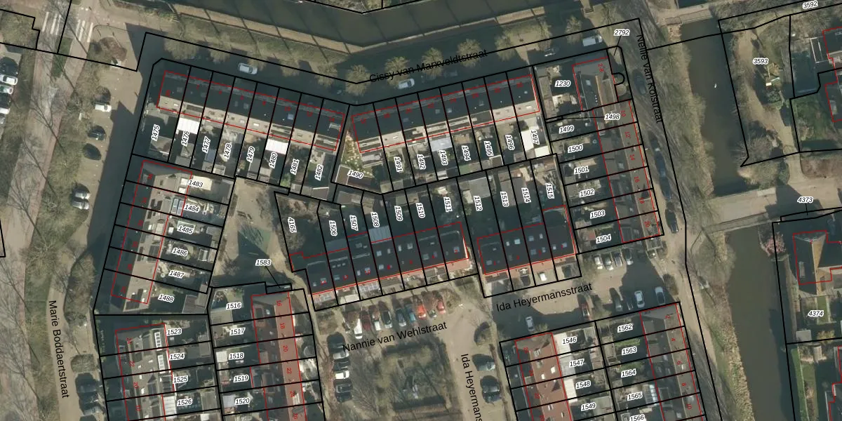 Gebruik de zoekbalk of klik op een perceel om informatie over het perceel te bekijken.