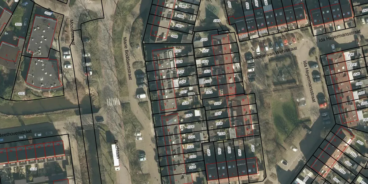 Gebruik de zoekbalk of klik op een perceel om informatie over het perceel te bekijken.