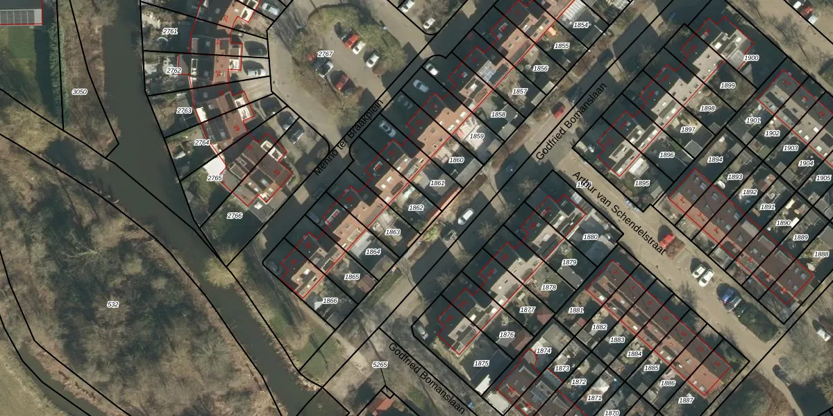 Gebruik de zoekbalk of klik op een perceel om informatie over het perceel te bekijken.