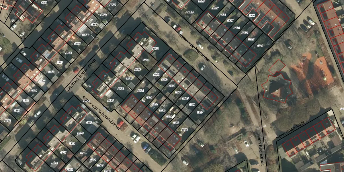 Gebruik de zoekbalk of klik op een perceel om informatie over het perceel te bekijken.