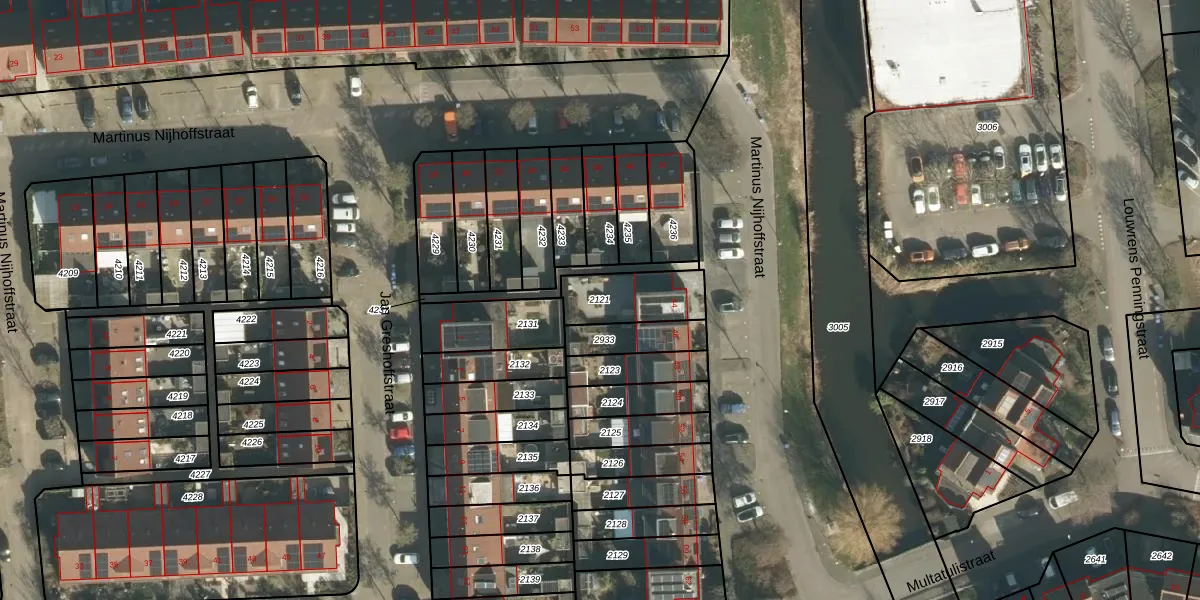 Gebruik de zoekbalk of klik op een perceel om informatie over het perceel te bekijken.