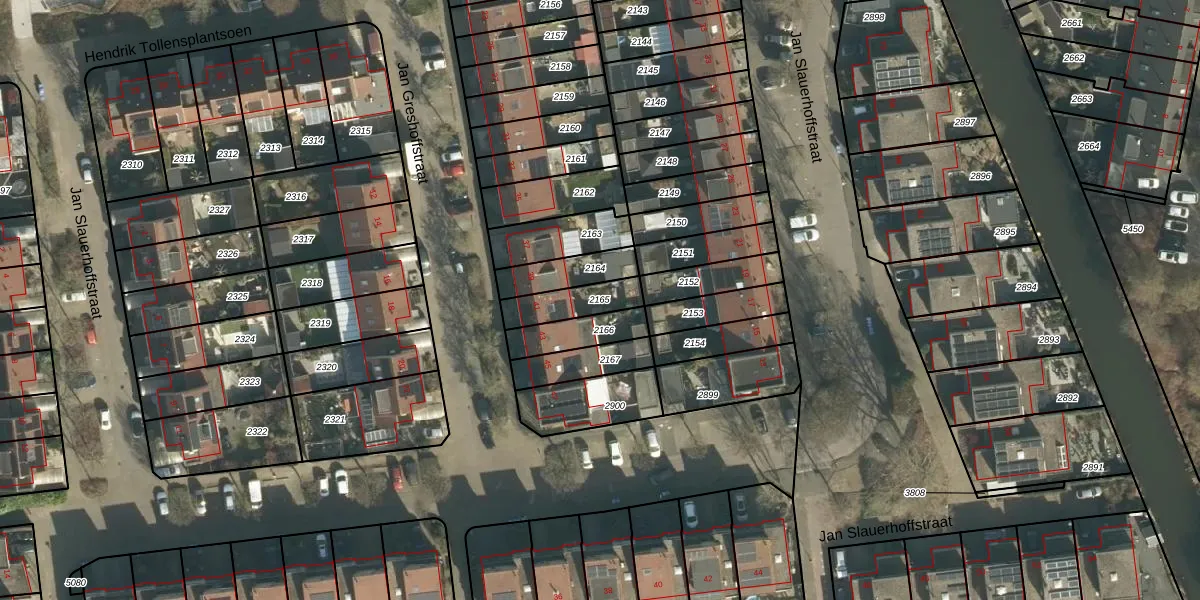 Gebruik de zoekbalk of klik op een perceel om informatie over het perceel te bekijken.