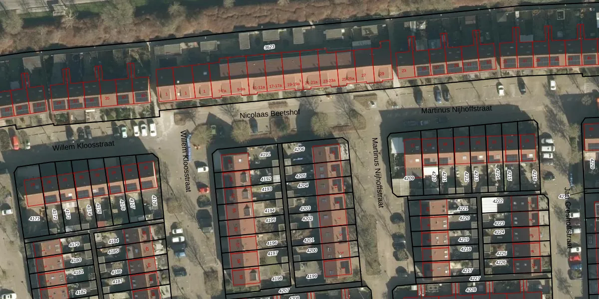 Gebruik de zoekbalk of klik op een perceel om informatie over het perceel te bekijken.